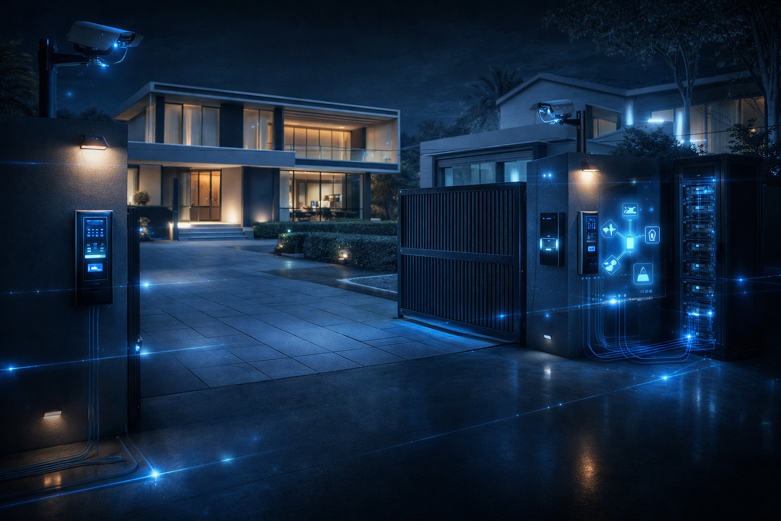Delivered smart security and automation systems including gates, cameras, and centralized monitoring.